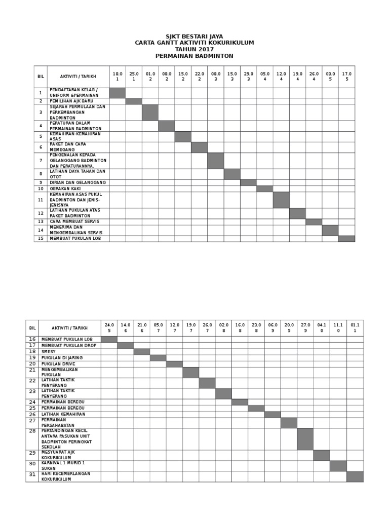 Contoh Carta Gantt Aktiviti Kokurikulum Tahun Pdf